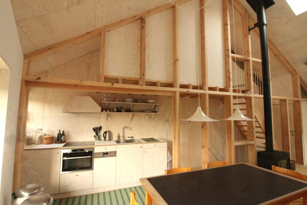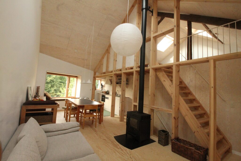 We verbouwden de schuur van een oude woning tot een gezellig buitenverblijf dat we graag delen met anderen. We beschouwen het als onze thuis, het is gezellig ingericht met spullen die ons lief zijn. Het is beperkt ruim met slaapplek voor twee tot maximaal drie mensen. Er is een keuken, living met houtkachel, badkamer, tuin, en een enkele slaapruimte (twee dubbele bedden en een kinderbedje). Het huis werd volledig geïsoleerd en blijft aangenaam warm door middel van vloerverwarming.
